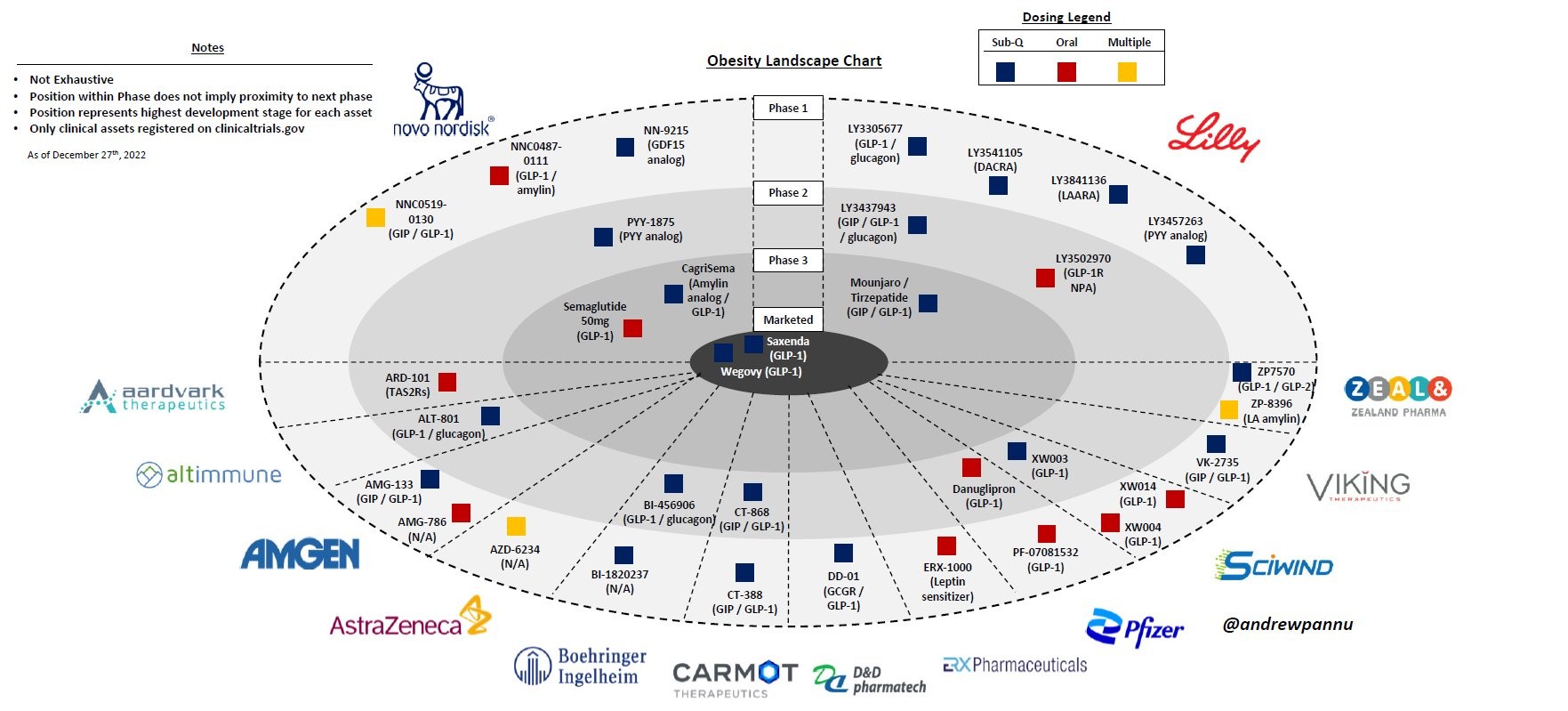 全球减肥药研发进展情况,礼来与诺和诺德远远领先