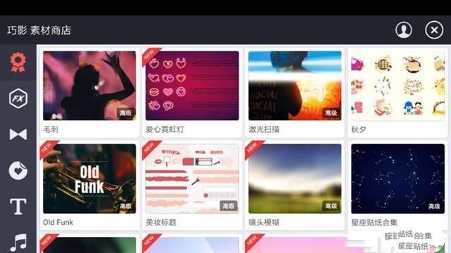 -素材商店提供数千种音乐、模板、字体、贴纸、转场,以及更多增强视频的功能素材,每周实时更新