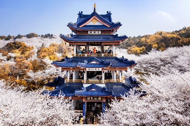 鼋头渚无疑是春季赏樱的圣地,樱花谷内数万株樱花盛放,如云似霞,漫步其中,花瓣如雪飘落,落英缤纷。太湖鼋头渚风景区湖光山色绝美,乘船游湖,碧波浩渺,远处山峦起伏,与岸边樱花交织,恰似一幅天然画卷。