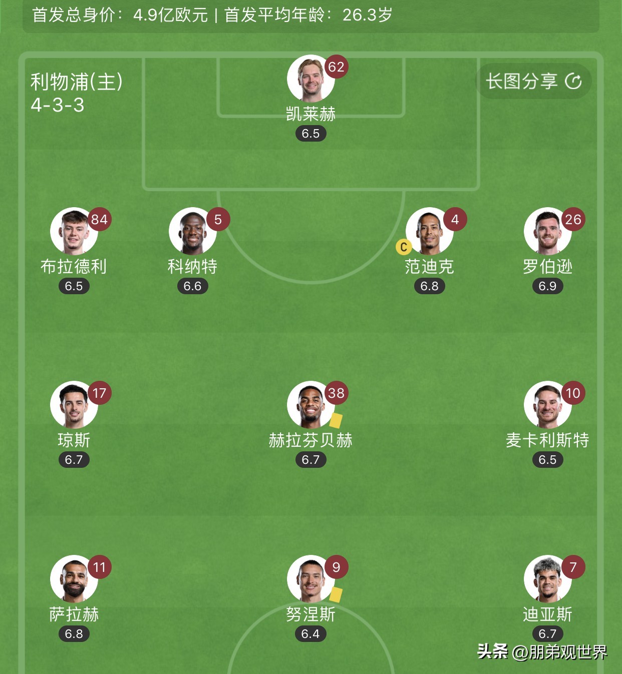 利物浦首发阵型: