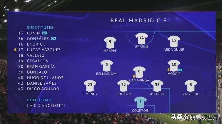 皇马首发阵型:姆巴佩出人左前锋,迪亚斯客串中锋