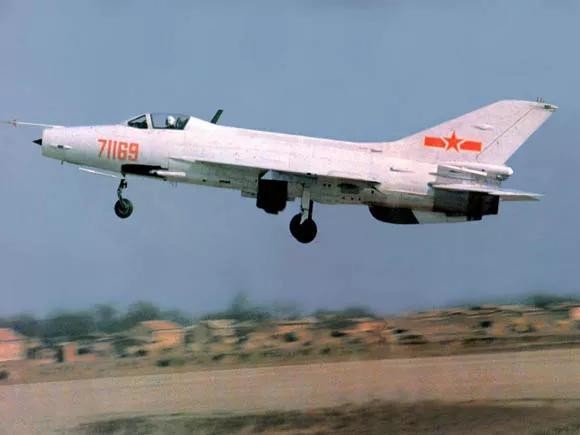 歼-7,成都飞机公司生产。为苏联米格-21的中国版,至今有444架在役。有传言称歼-7在逐步分批退役。