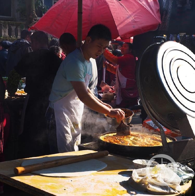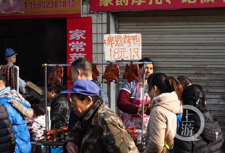 古人云:但凡赶场日子,再不济事的乡镇,红锅饭铺,都要开张。图为赶场日上自产自销的啤酒鸭。