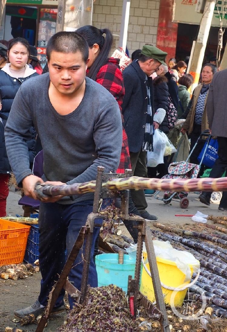 赶场,本是远古时期,因为信息不够灵通,交通不够方便,物资不够丰富而盛行于中国农村的定期集中贸易方式。图为蔡家赶场日,市民手拿甘蔗排队等待付钱。