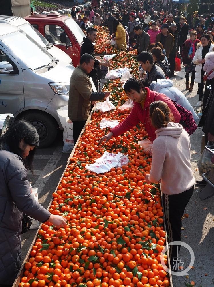 香甜多汁的橘子摆满马路一旁,任你选购。