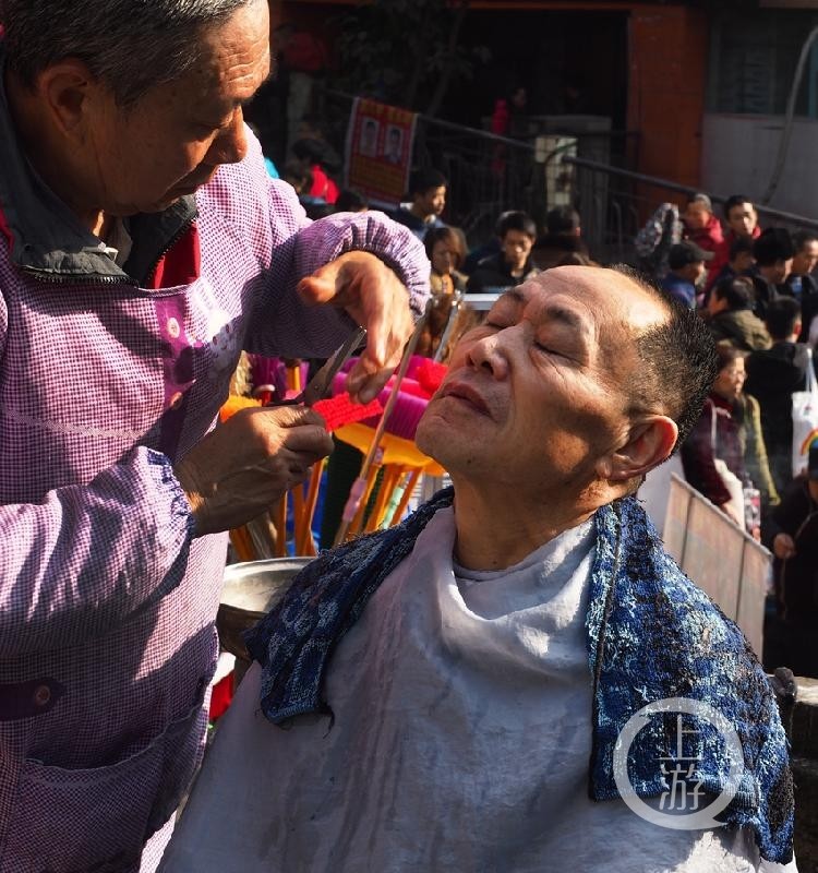 赶场日上,市民享受“刮脸”。