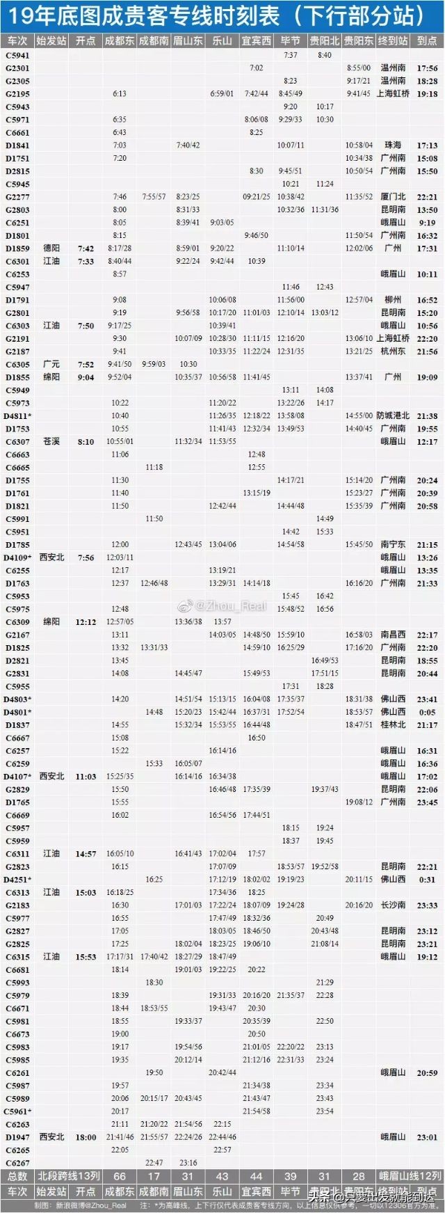 今天从贴吧得到小道消息,成贵高铁车次表首次流出,不一定准确,但很有参考价值,并且分享给大家。下图是最新流出的车次表,怕大家看不懂,我在下面整理了宜宾到每个城市所需要的时间表。