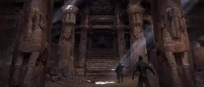 在当地向导安利满的带领下,胡巴一行深入到新疆的沙漠,向着传说中的西域精绝古城进发。在遭遇风暴和沙漠行军蚁的双重打击下,狼狈的考古队终于发了精绝古国的大门扎格拉玛山。其实这座扎格拉玛山,完全是属于作者虚构。不过,剧中的精绝古城遗址,真的在历史上存在过。那就是塔克拉玛干中最为著名的沙埋古城之一,尼雅遗址。