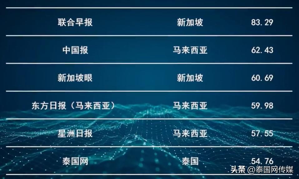 ③ 世界华文传媒社交媒体生产力榜海外地区排行榜:“泰国网”世界第4,泰国全区第1;