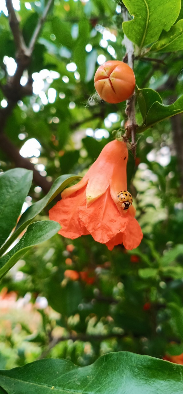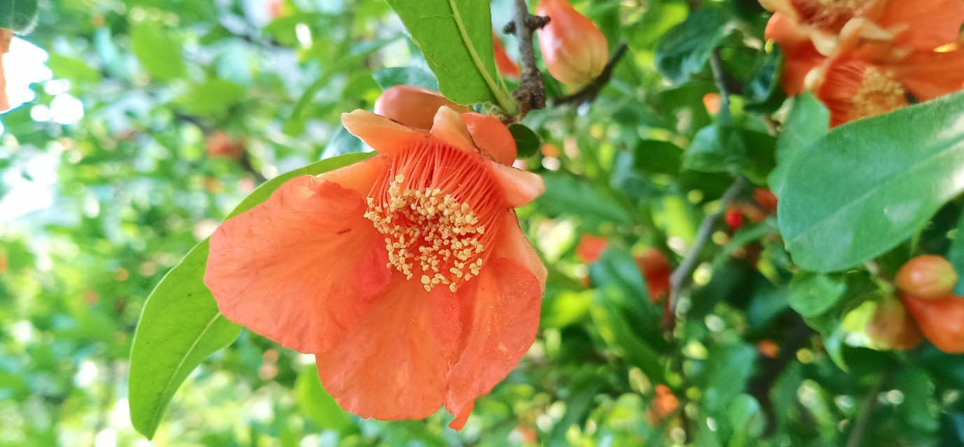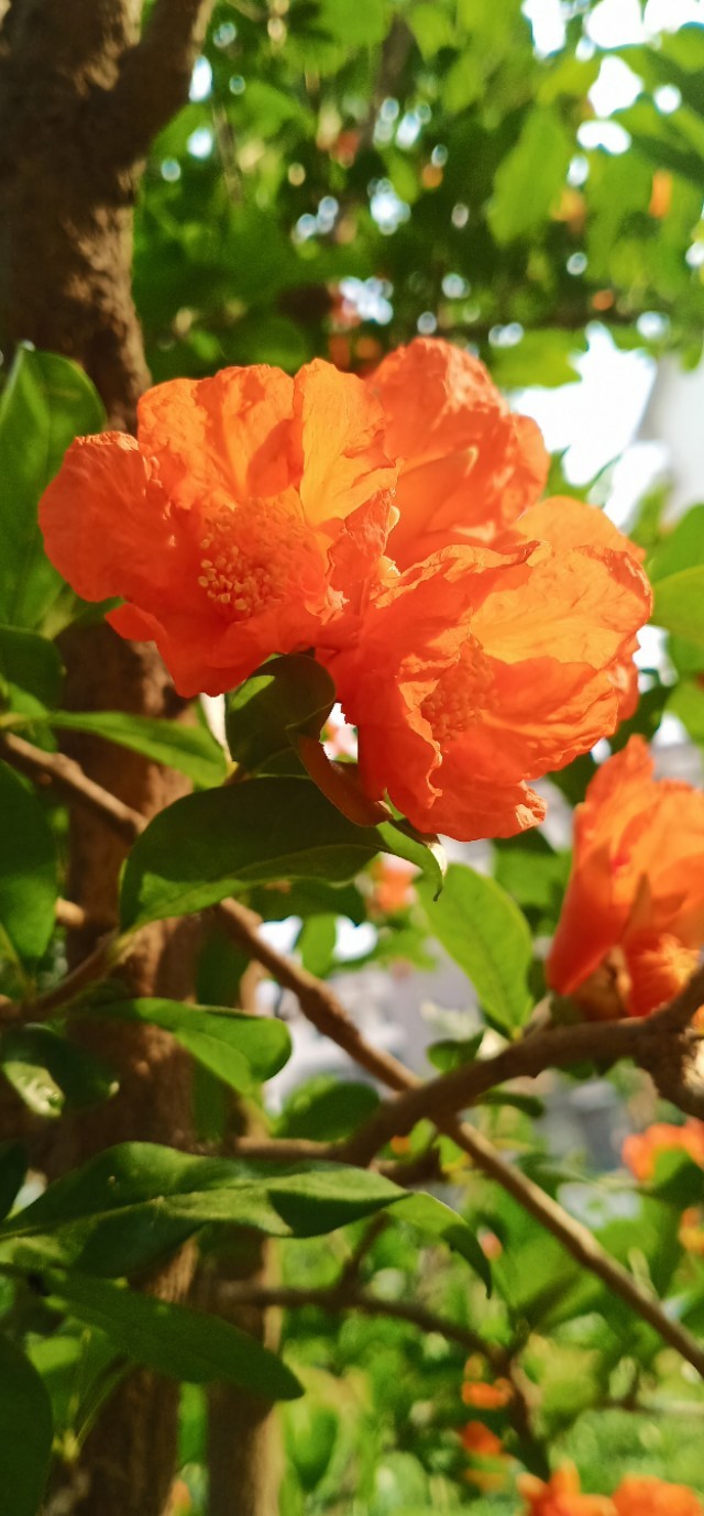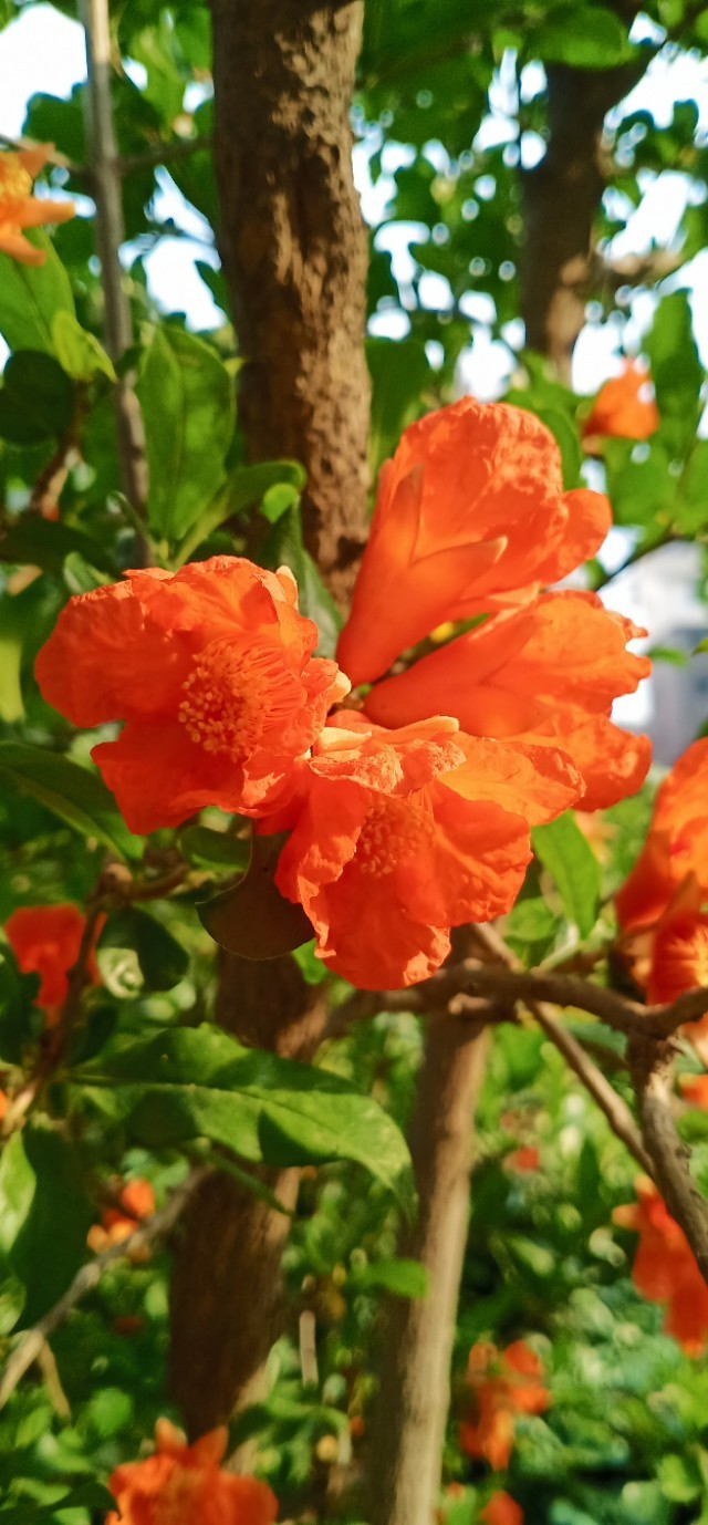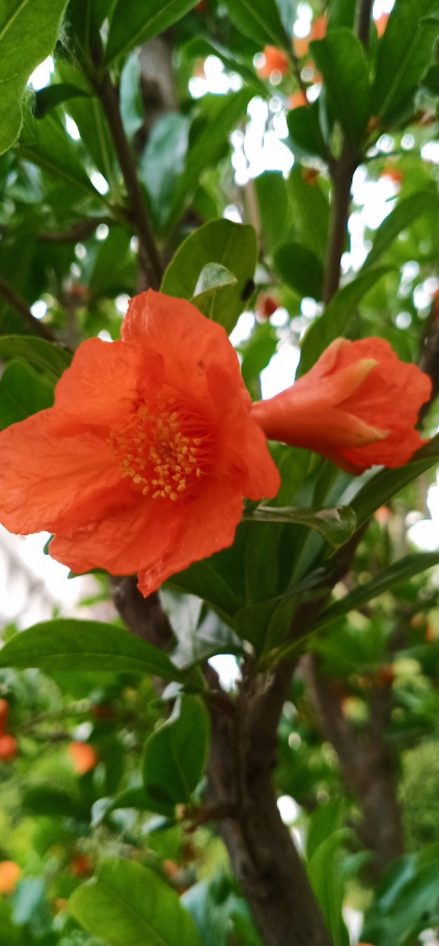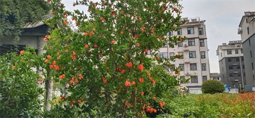 今年赶巧遇见了一树,美艳的石榴花又开放了,我拿出相机记录下了,这个浅夏石榴花开的最美时刻。