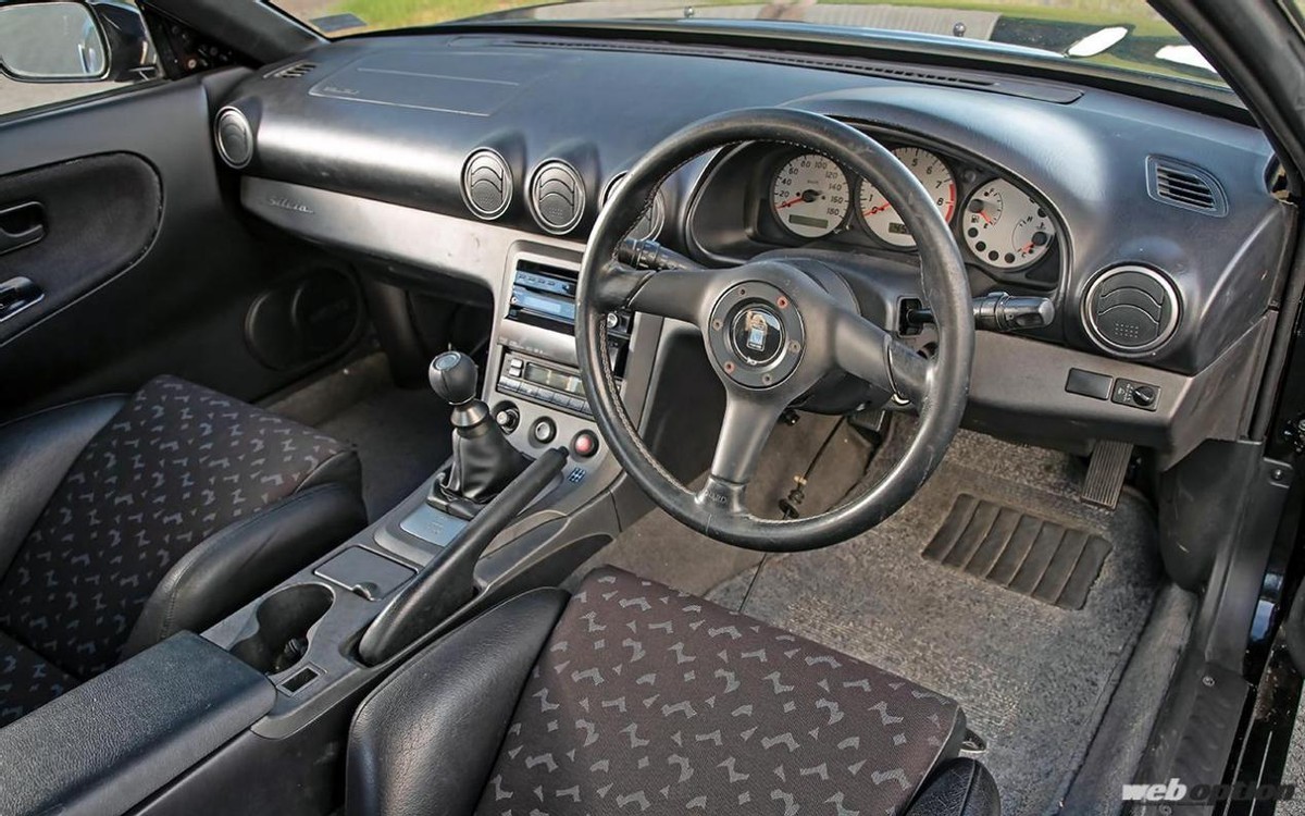 进入车内,可以看到仪表部件均更换为 S15 Silvia的,这也是为了应对移植为6速MT变速箱后的车速信息传递。同时这台车的空调系统也为了适应S15而进行了改动,毫无疑问车内的改装就花了很多功夫。
