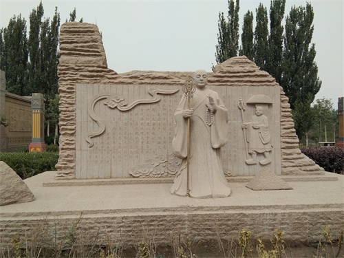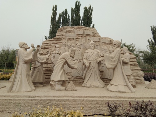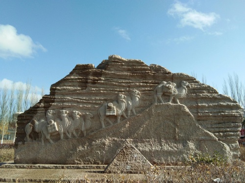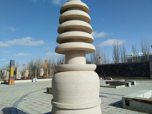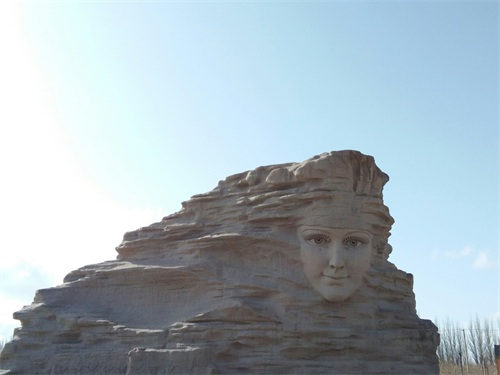 楼兰美女雕像高21米、正面宽46米、纵深3米,材料采用新疆鄯善的红花岗岩