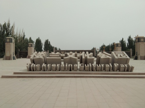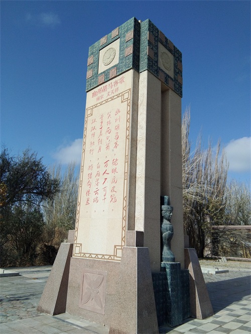 “在第一篇章《楼兰之梦》中包含“丝路上的楼兰”地图、“楼兰文化山门柱”以及“世界的楼兰”浮雕墙三个主要景观节点。而两侧的文化柱上则雕刻着汉唐时期与楼兰文化相关的诗词歌赋。