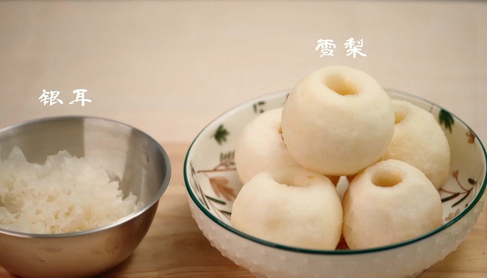 1.第一步:雪梨去皮去核,泡发银耳放入搪瓷杯,水没过食材