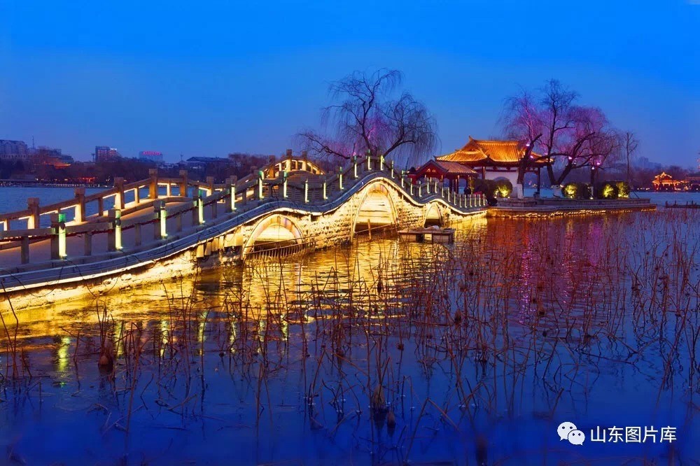 作为济南的新名片,大明湖的“变身”进程一直都备受关注。济南大明湖景区灯火辉煌,美不胜收!“一湖一环”项目是以大明湖、环城公园为核心,在两岸及周边通过绚丽多彩的灯光勾勒出小桥、泉水、古建筑等轮廓,力求展现泉城独特的历史韵味和文化特色。