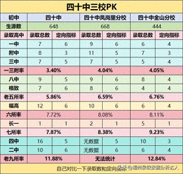 多次有人留言问四十中老八所或老九所录取情况,其实今年三校区家委都高调发布了喜报,本来不想做的。而且凤岗里分校的喜报中没有体现二中和四中,所以统计结果见头图吧。