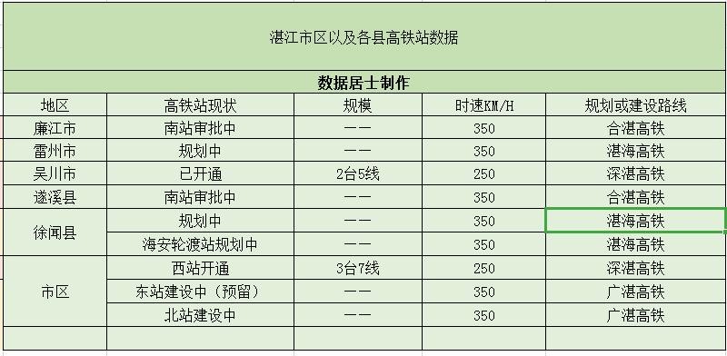 湛江将有9个高铁站,其中7个在规划建设中,2个已经开通使用