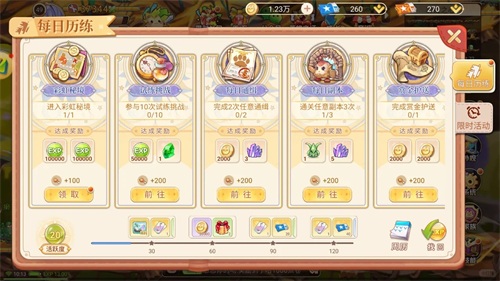 对于新手玩家来说,完成主线任务是必不可少的。随着主线的推进,个人副本和每日任务将陆续开放。这些任务不仅可以为玩家提供丰富的游戏剧情,还能获得升级必备的彩虹秘境入场券。