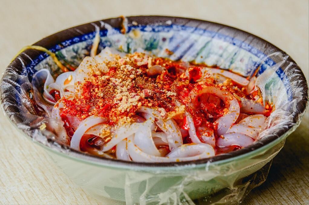调料:葱蒜、小米椒、香菜、生抽、醋、蚝油、盐、辣椒油