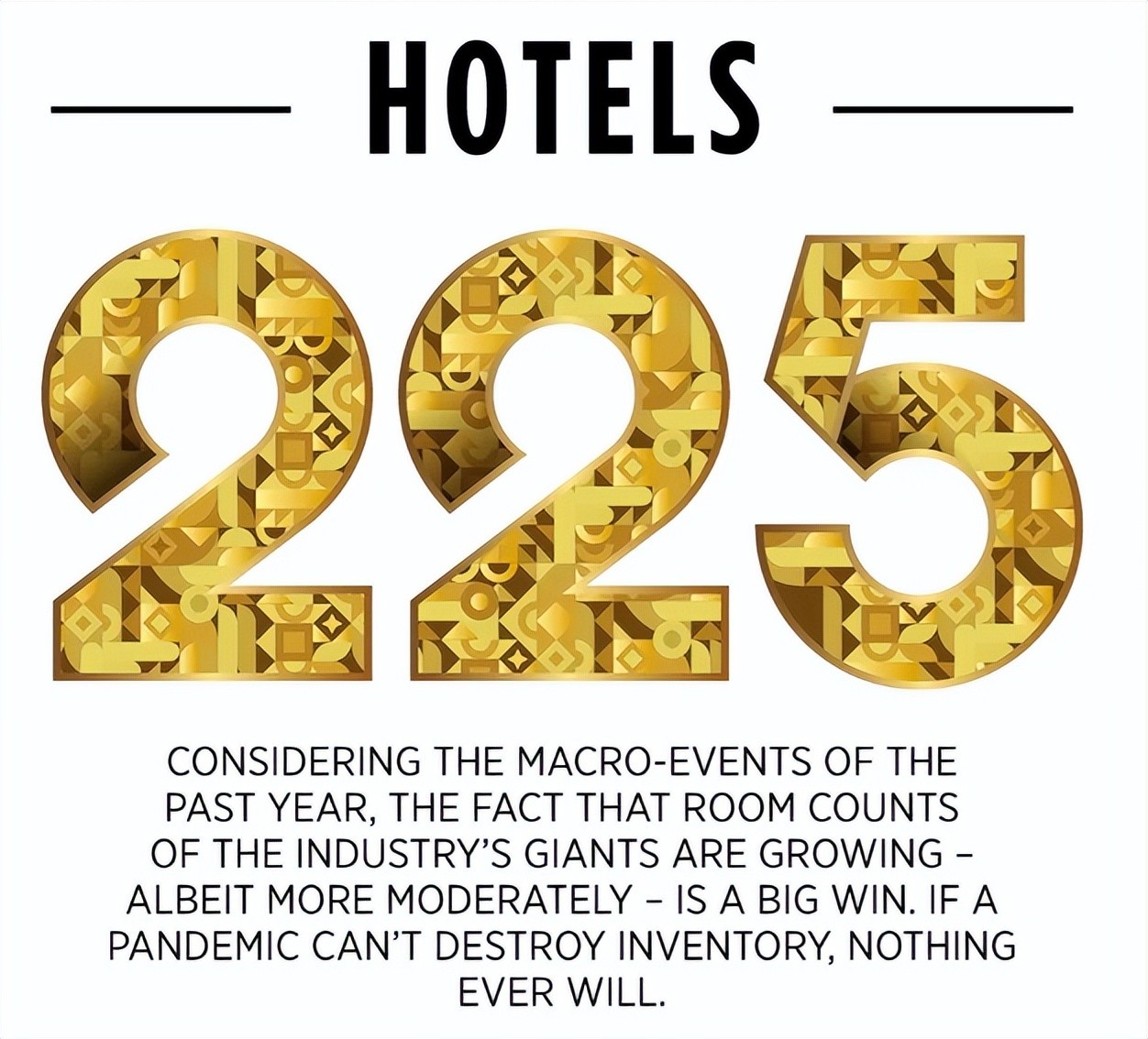 近日,酒店业权威杂志《HOTELS》通过对全球酒店2021年经营状况和业务拓展情况的深度分析,在其官网上公布了全球酒店业225强的排名,其中洲际酒店集团以6,032家酒店,885,706间客房位列第四名(前三分别为万豪国际集团、锦江和希尔顿)。