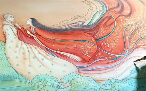 耆婆所生活的年代是公元四世纪,佛教在当时已从印度传播到亚欧大陆的各个国家,在很多国家被奉为国教,龟兹国就是其中之一。因此,耆婆公主从小就受到佛教文化艺术的熏陶,对佛学有着超出常人的领悟力,所以对天竺来的高僧鸠摩罗炎既是仰慕又是爱慕,发誓非他不嫁。