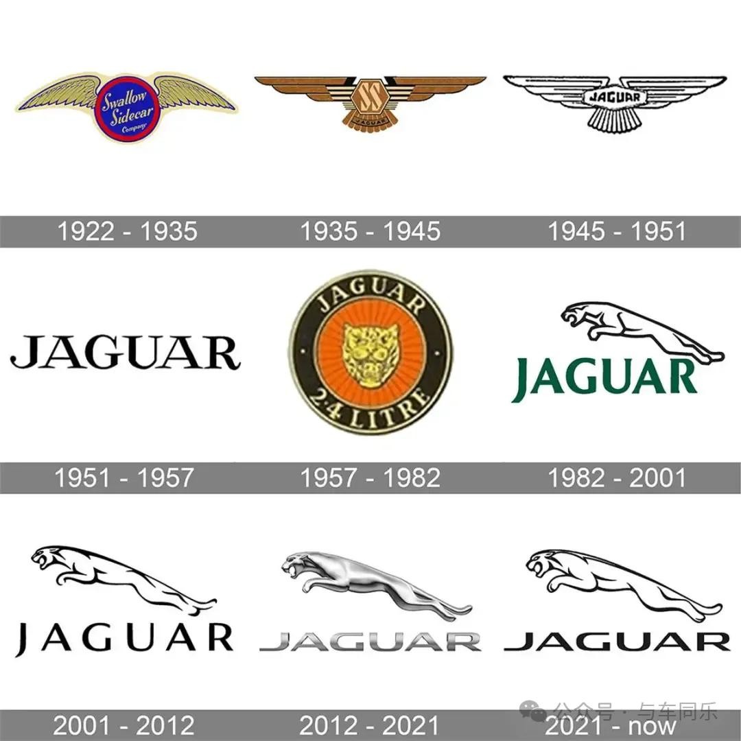 捷豹除了字母LOGO外,还有一个图形LOGO,这是捷豹历年的LOGO,最出名的要数跃豹车标。