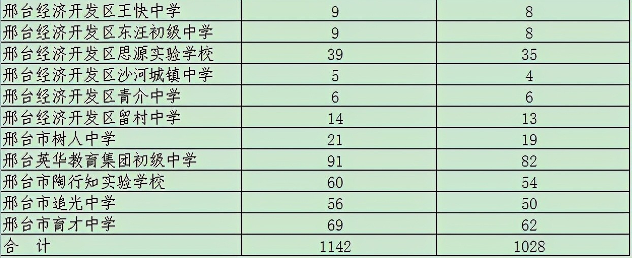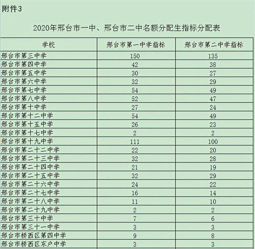 看到了吗?这1142人才是录取时最多的一部分,指标是分到学校的,而且只分配到市区的学校,不管公办还是私立,家长会如果把孩子的高中目标定为邢台一中、二中,初生进市区上学是最好的选择。分数线可以在统招生录取分数线下降50分,分学校录取。对部分初中学校在最低控制分数线上仍不能完成的名额分配生指标,市教育局将调整为邢台市区普通高中统招生计划集中使用,按考生中考成绩、志愿从高分到低分录取。
