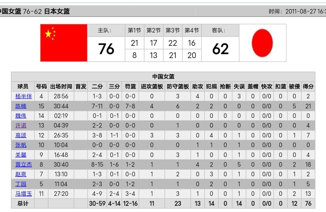 2011年女篮半决赛数据统计