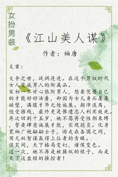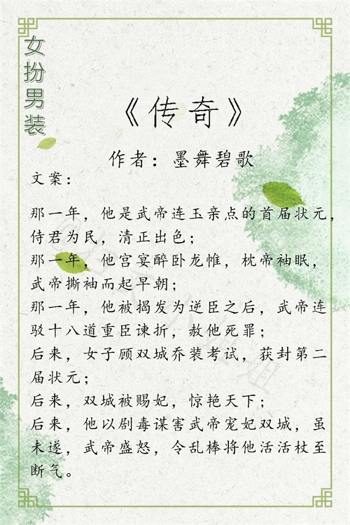 今天推荐一批女扮男装的古言文,女主纵横官场,笑傲江湖,游览山水,洒脱自在,谁说女子不如男。