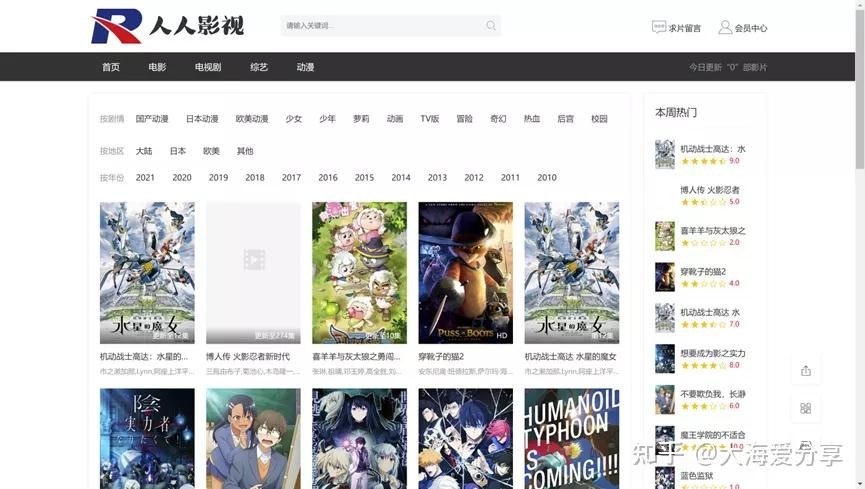 人人影视网是由影视剧爱好者成员成立的网站,免费提供不少动漫资源等。
