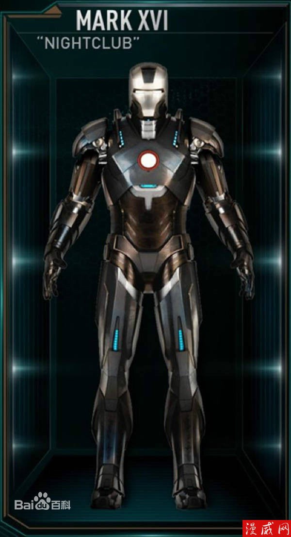 Mark16出现在电影钢铁侠3里,当托尼命令贾维斯启动“家庭聚会”计划时,Mark16和其它装甲被激活,帮助托尼对付奥尔德里奇.基利安。