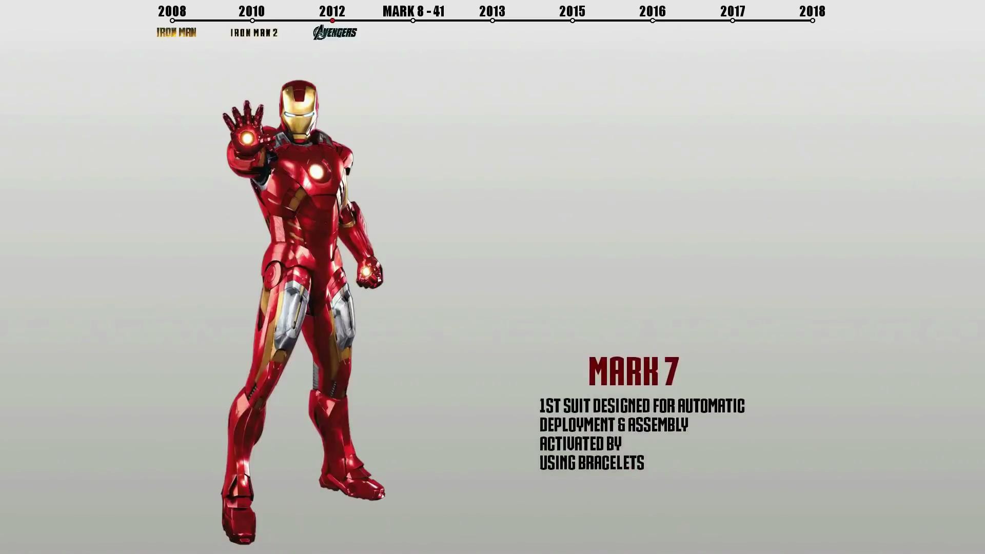 Mark7是托尼·斯塔克创造的第七套装甲,出现在电影钢铁侠3和复仇者联盟。Mark7的激光制导跟踪快速部署系统是一个技术上的突破,也是后来更高版本的钢铁侠装甲最基本部署方式。