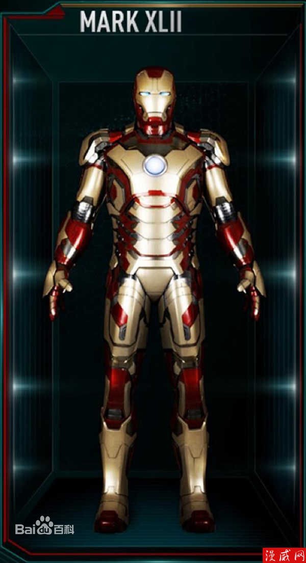 Mark42出现在电影钢铁侠3中,具备了自动组装的能力,优点是可以远程操控和自动组装。
