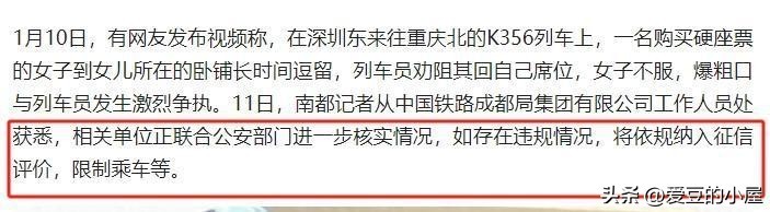 1月10日,在深圳开往重庆北的K356次列车上,有网友用视频全程记录下了整个事情的经过。