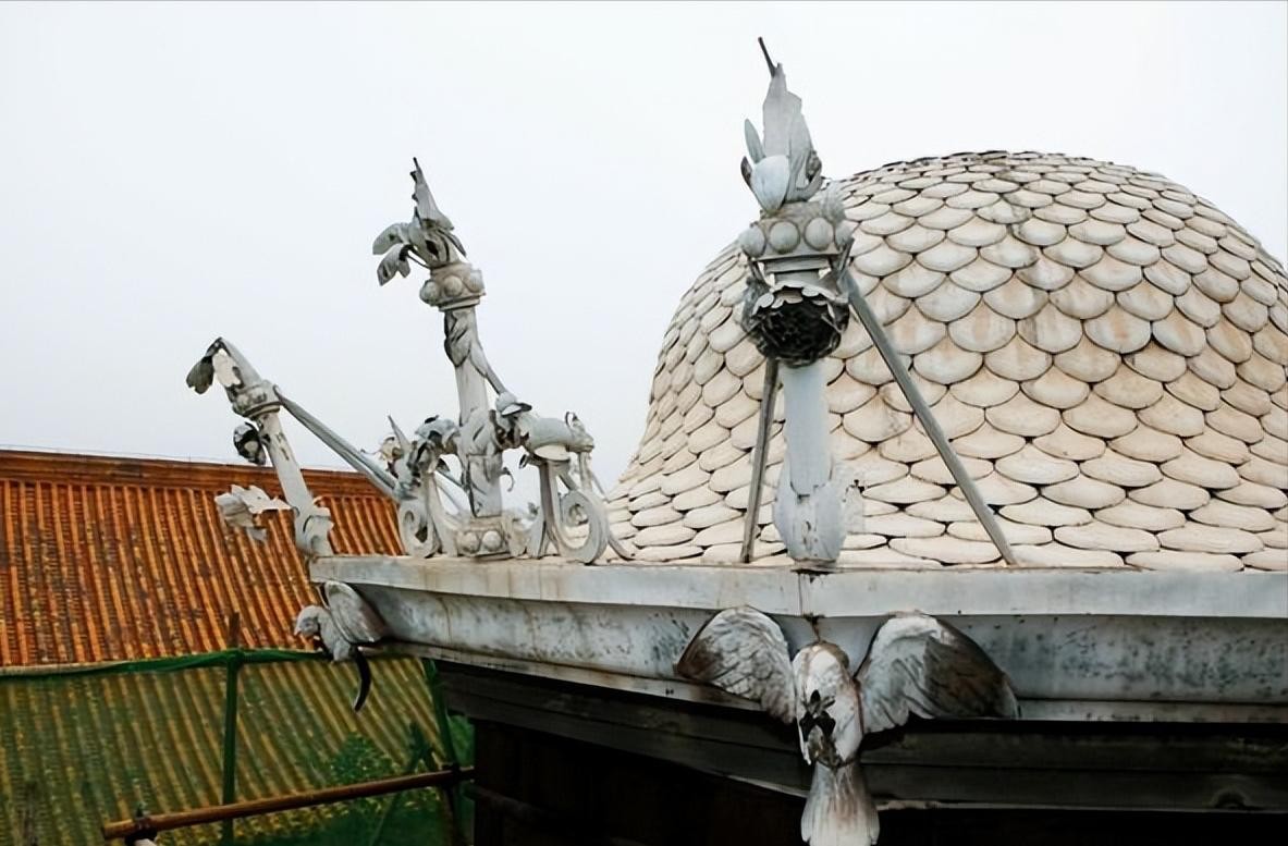 整个水晶殿殿大部分构架为铁铸,殿内4根蟠龙纹柱也是铸铁锻造。