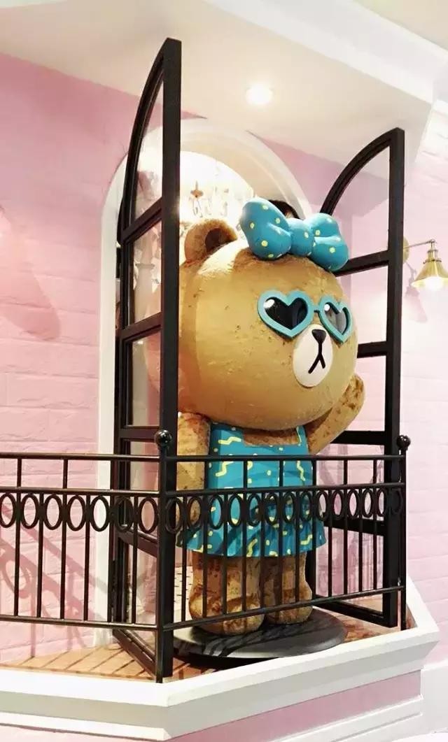 除了店内几个大大的布朗熊,就论站在窗边的这个丘可妹妹有最多的粉丝排队等合影了。