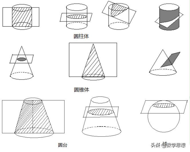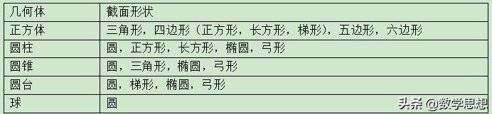小学数学:截面在现行的小学数学教材中没有明确的定义。究竟什么是横截面,截面的形状与什么有关,教材中没有说明,教学参考书中也没有提到。只是在学习梯形面积时提到过横截面,长方体和正方体、圆柱、圆锥的课后练习中有相关习题。例如“把圆柱、圆锥切成两个部分,截面分别是什么形状?”,对截面的相关知识稍有接触。具体如下: