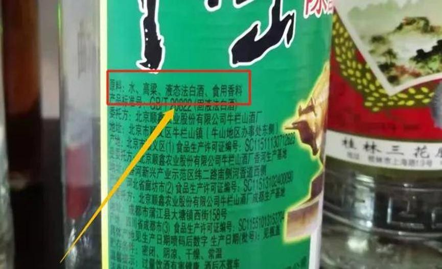 虽说白酒属于快销品,但在这个行业中,往往会出现“假酒”的现象。可牛栏山在配料上,注明了水和高粱之外,还特别标注了含有食用香料。