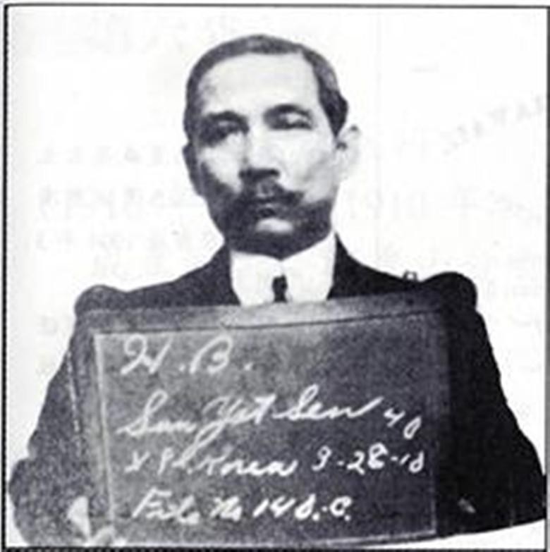 孙中山1904年3月,遭美国旧金山移民局逮捕拘留的档案照。