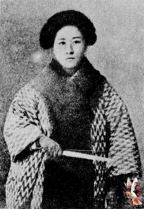 鉴湖女侠秋瑾(1875-1907,浙江山阴人)赠给浙江绍兴明德女子中学堂同窗好友张冰华的照片。 此照摄于1905年