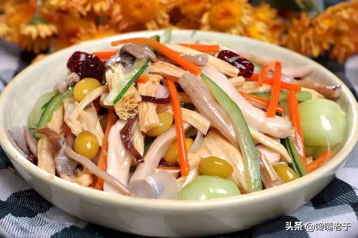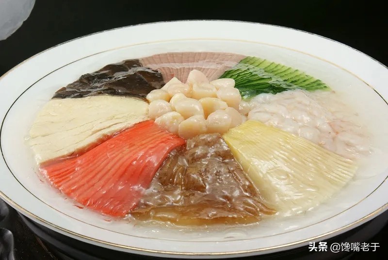 其次,整道菜还按照佛教的饮食习俗,不用葱、不用蒜,所以,这道菜还有一个名字,叫作“罗汉斋”!这道菜虽然都是素菜,但入口鲜香清淡,老于最喜欢吃里面的猴头菇、玉米笋等食材。
