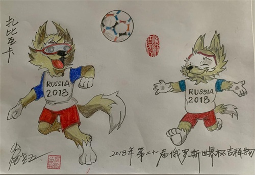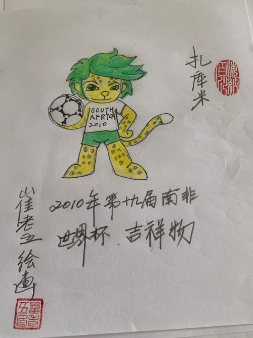 我是哈尔滨球迷崔老五(崔跃军),《历届世界杯吉祥物》简笔画作者