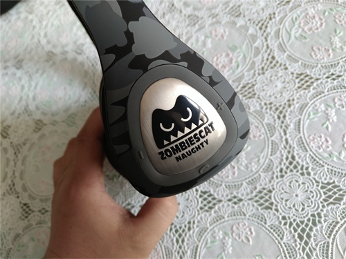 魔鬼猫蓝牙耳机采用的大耳罩设计,耳罩部分采用蛋白质仿生皮革,在佩戴上会更为舒适。而在耳罩的外侧采用金属贴片的对称设计,手感非常棒,唯一的不同点是右侧耳罩外有3个操作控制键。