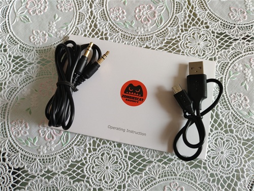 在“黑蛋”下面还有一层则是耳机的配件部分,配件有充电线、音频线及使用说明书组成。