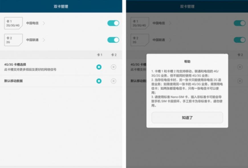 华为揽阅M2青春版除了支持全网通,还支持双卡双待,一个Nano SIM卡,另一个卡槽是Nano SIM卡与TF卡共用,这也就意味着双卡双待和单卡+TF卡的模式需要进行二选一。并且,两个卡槽不能同时使用4G/3G业务,且无法同时支持两张电信卡。虽然不支持同时34G待机上网,EMUI3.1便捷的软切换,让你轻松切换上网卡。