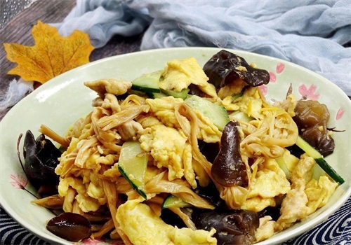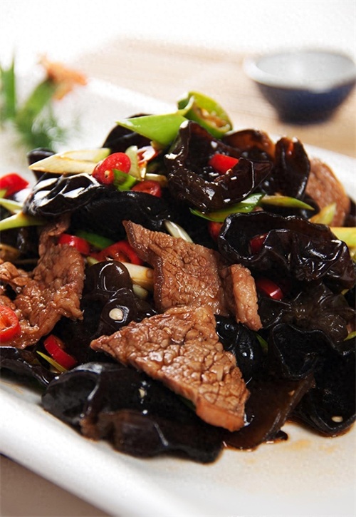木耳炒肉是一道色香味俱佳的家常菜。首先,将木耳泡发后切成小块,猪肉切成薄片。在炒锅中加入少量油,先将肉片炒至变色,再加入木耳和适量的葱花、姜末翻炒。接着,加入生抽、老抽、糖和一点水,翻炒均匀,直至肉片熟透木耳软烂。这道菜肴的亮点在于木耳的脆嫩和肉片的鲜美,搭配简单的调味,既保留了食材原有的味道,又增添了丰富的层次感。