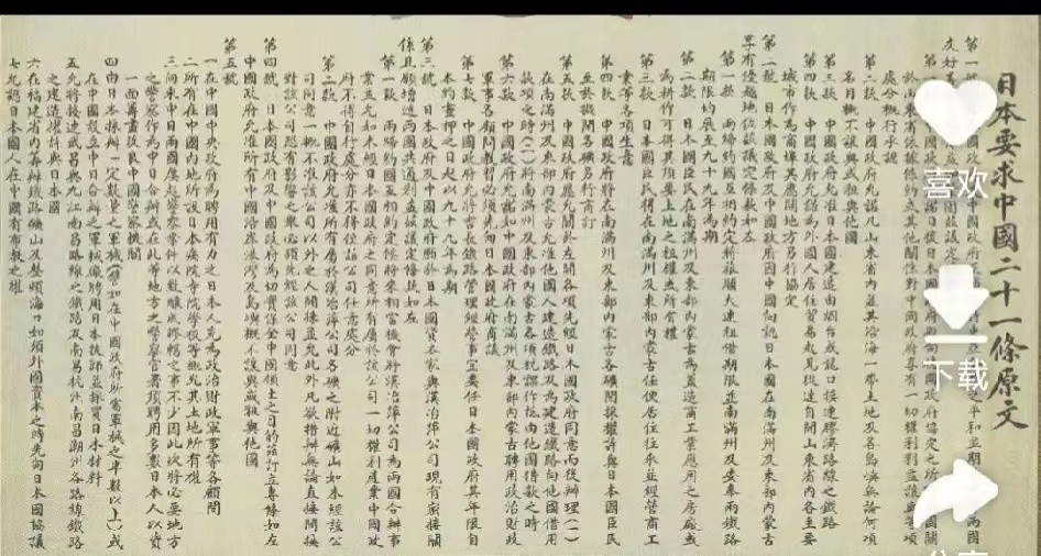 “二十一条”的提出,是日本帝国主义妄图将中国变为其殖民地的野心暴露。1915 年 1 月 18 日,日本驻华公使日置益悍然向中华民国大总统袁世凯提出了“二十一条”无理要求。其内容主要分为五号: