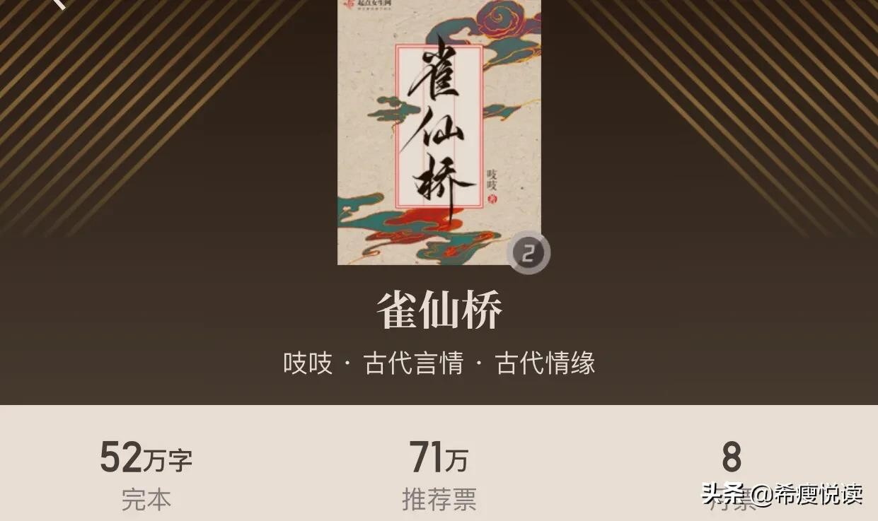 不知道书友们可有遇到过这样的书,在我的书架上,就有这样一本,叫做《雀仙桥》,它的作者非常有名的古言大神吱吱。