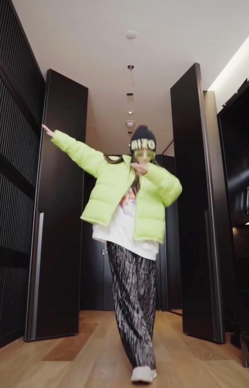 从画面来看,李小璐穿着潮流嘻哈,压低帽檐、衣服松松垮垮。不知道从什么时候开始,李小璐就爱上了这种炫酷十足的风格,背景音乐也是一段极具动感的嘻哈旋律。