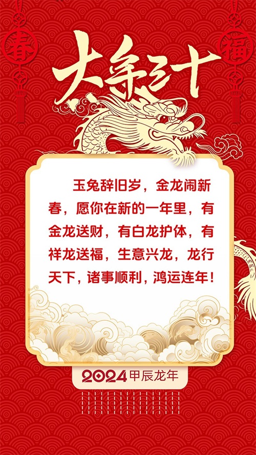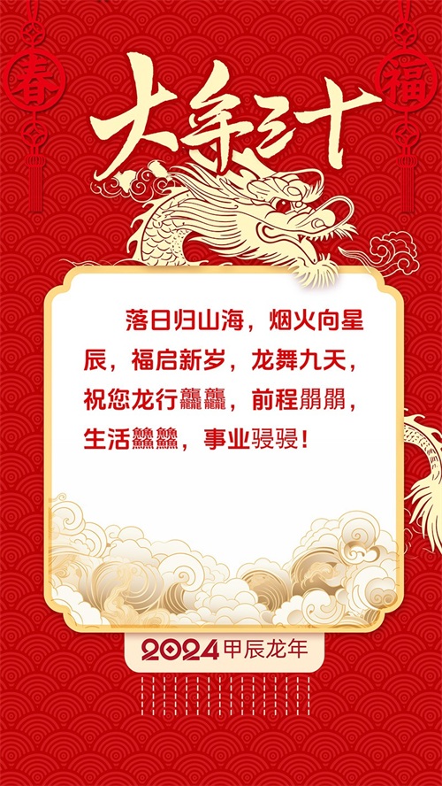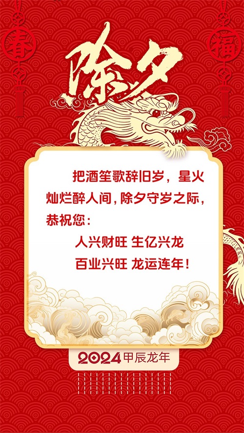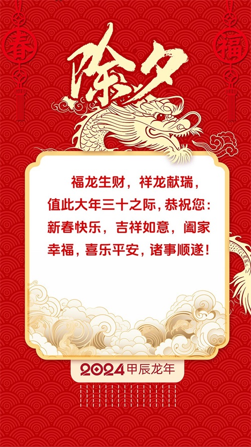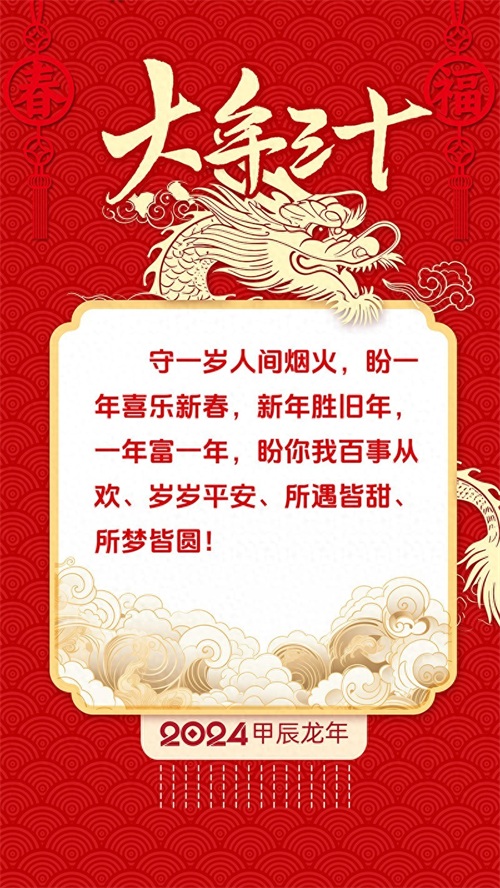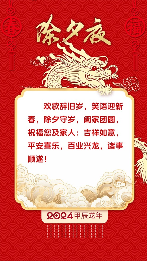 我们举杯庆祝除夕,大年三十,最好的愿望送给大家,龙行龘龘,新年平安!